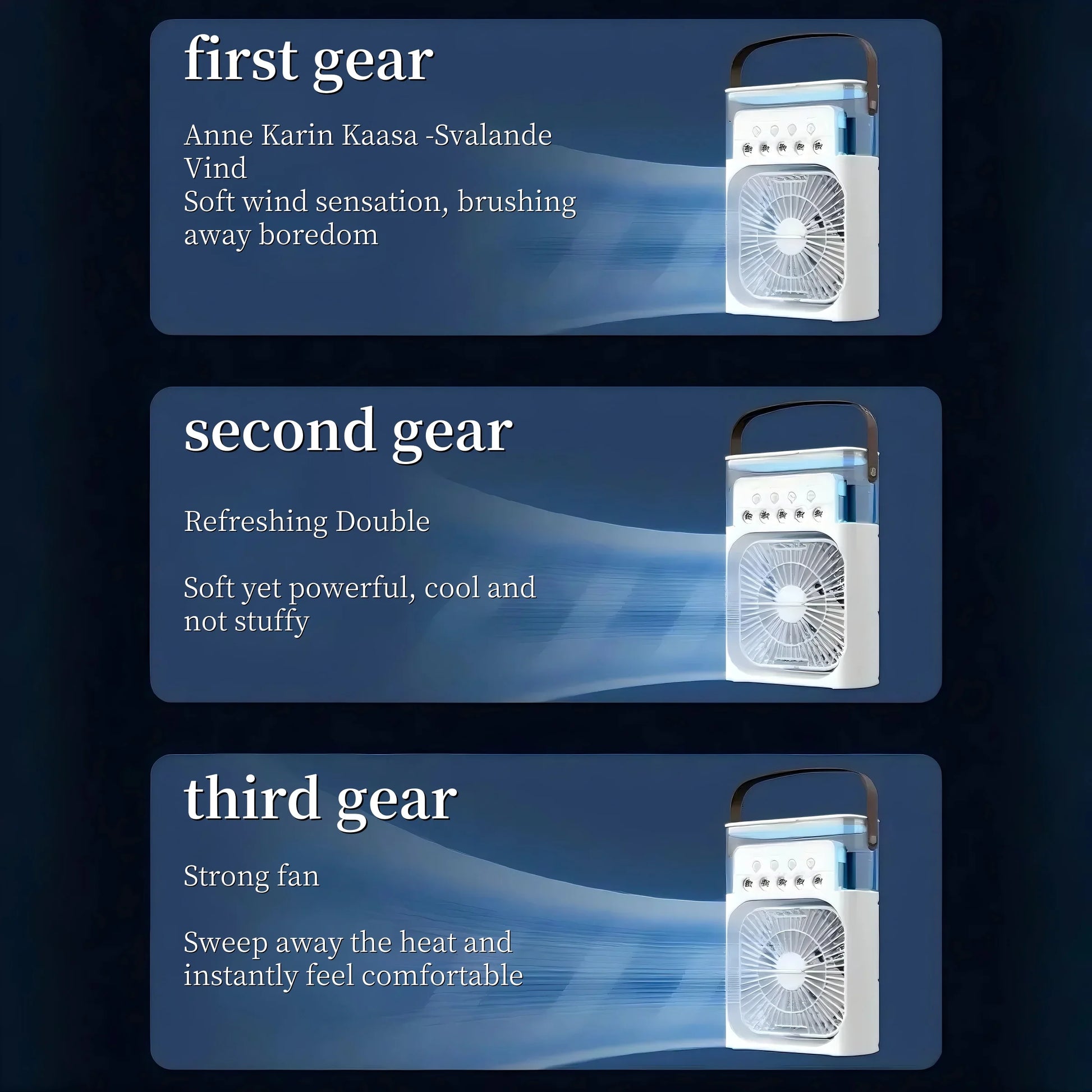 Spray fan portable household three in one small air cooler, 7-color LED night light, 5-hole humidifier, 1-3 hour timer